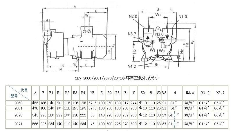 1、2BA型:该类水环真空泵多用于抽除气体和水蒸气,吸气压力可以达到33mbar绝压,当真空泵在吸气压力接近极限真空下长期工作时,应联接气蚀保护管,以对泵进行保护并消除气蚀声。